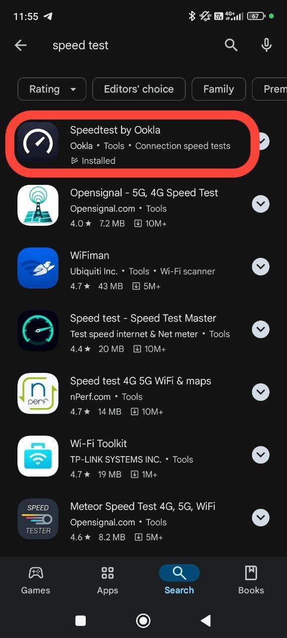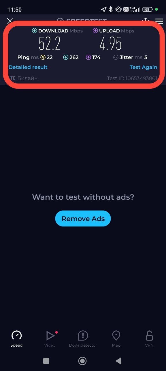 Также измерить скорость интернета вы можете через приложение Speedtest для IOS и Android.