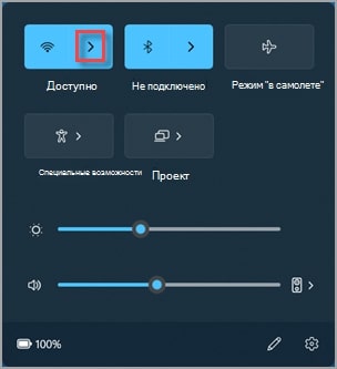 1. Выберите значок «Сеть», «Звук» или «Батарея» в правой части панели задач, чтобы открыть быстрые параметры.
